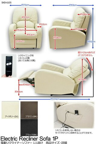 ソファー ソファーベッド ソファーカバー ソファベッド ソファー 2人掛け ソファー 3人掛け ソファ 一人掛け ソファーカバー 3人掛け 肘付き ソファカバー ソファーカバー 2人掛け ソファ l字 ソファ サイドテーブル ソファ 脚 ソファ アンティーク ソファ マットレス ソファ カバー 3人 ソファ 脚 高さ調整 ソファ 赤 ソファ アンティーク アームレス ソファ 洗える ソファ 取り外し ソファ エスタ ソファ エア ソファ おしゃれ ソファ オットマン ソファ 大きい ソファ オットマン 付き ソファ カウチ ソファ 2人 ソファ カバーリング ソファ かわいい ソファ 高低 差 なし ソファ 革 ソファ マルチ ソファ マルチ カバー ソファ 木 ソファ 木肘 ソファ クッション ソファ クラシカル ソファ こたつ ソファ コンパクト ソファ コーナー ソファ 子供 ソファ 三人掛け ソファ 三人掛け 北欧 ソファ 収納 ソファ 白 ソファ シート ソファ シンプルモダン ソファ 滑り止め ソファ チェック ソファ テーブル ソファ テーブル ソファ ソファ ネイビー ソファ ハイバック ソファ マット ソファ マルチカバー ソファ マットレス ダブル ソファ グレー ソファ 合皮 ソファ 座椅子 ソファ デニム ソファ 電動 ソファ ブランケット ソファ ブルー ソファ ベンチ sofa bed ソファ パッチワーク ソファ ピンク ソファ ポケットコイル ソファ 二人掛け ソファ 二人 ソファ 二人掛け リクライニング ソファ 布団収納 ソファ 本革 ソファ 一人 ソファ 一人用 ソファ 木製 ソファ モダン ソファ レザー ソファ ロー タイプ ソファ レザー レトロ ソファ ヴィンテージ ソファ 1人 ソファ 1人掛け ソファ 1p ソファ 1人用 ソファ 150cm ソファ 2.5人掛け ソファ 2人がけ ソファ 2.5 ソファ 2人掛け ハイバック ソファ 4人掛け ソファ 4人 2人掛けソファー 2人掛けソファ 2人掛け ソファーカバー 2人掛け ローソファー 2人掛け 座椅子 2人掛けソファー 布 2人掛けソファカバー■電動リクライニングソファ 1人掛け用 ブラック/ブラウン/アイボリー sk-skb6105商品詳細サイズW730xD930〜1540xH780〜930mm(梱包サイズ:W750xD750xH850mm)無段階調整リクライニング本体重量:42kg(梱包重量:47.5kg)一部組立品(背もたれクッションのはめ込み有り)1梱包素材表面:合成皮革(座面・背もたれ・フット:ポリウレタン / 肘部・その他:PVC)内材:ウェービングバンド・ウレタンフォーム2ボタン一体型リモコン1個(左肘側に付属・収納用ポーチあり)電源ケーブル長さ:1400mm生産地中国送料全国一律無料(沖縄、離島は配達不可)商品説明ゆったりと極上のリラックスを!電動リクライニングで楽々&リラックス。